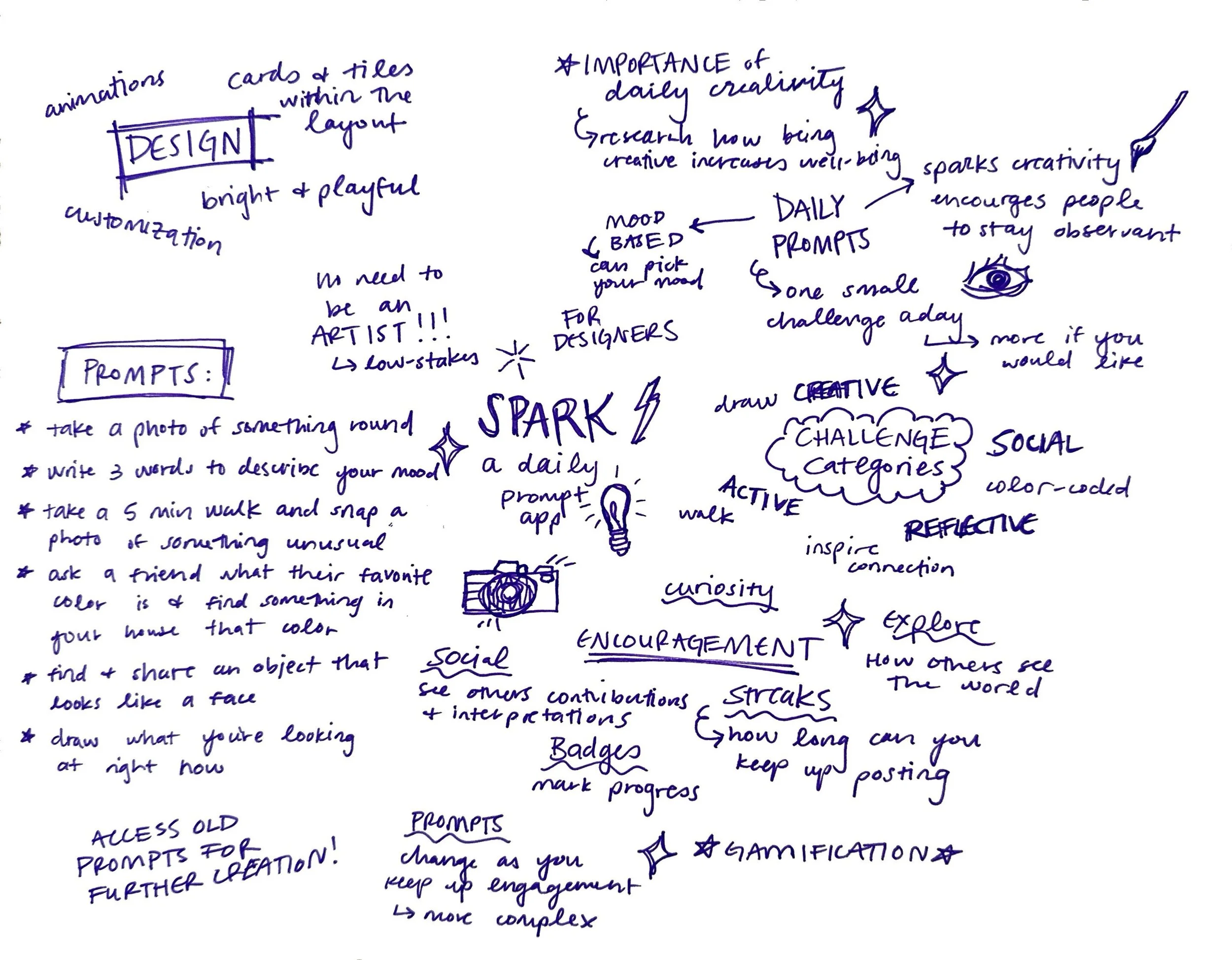 Spark’s branding centers around a hand-crafted aesthetic that celebrates imperfection, experimentation, and curiosity, aligning with the app’s goal of helping users rediscover everyday wonder.